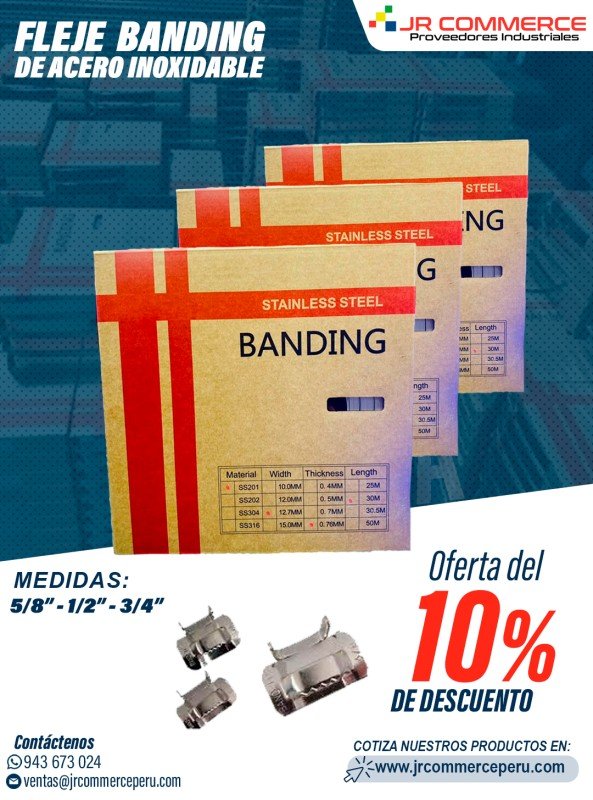 Utilizada para la sujeción de diferentes accesorios usados en el tendido de cables aéreos y sujeción de cajas, en postes de telecomunicaciones y energía eléctrica, la cinta es fabricada de acero inoxidable de alta resistencia mecánica.