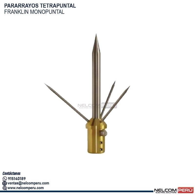 Pararrayos tetrapuntal. Pararrayos de cuatro puntas de acero inox. con adaptador de bronce para montaje en tubo estándar de Ø1/2” y conexión a cable de cobre.