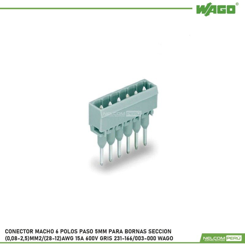 CONECTOR MACHO 6 POLOS PASO 5MM PARA BORNAS SECCION (0,08-2,5)MM2/(28-12)AWG 15A 600V GRIS 231-166/003-000 WAGO